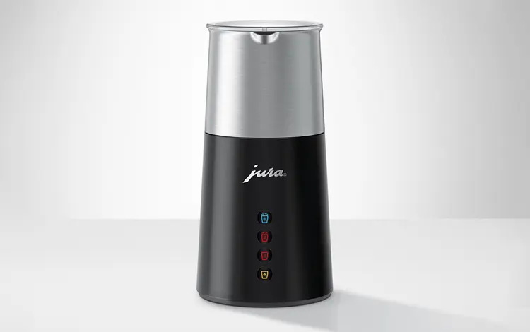 Een bijzonder hoogtepunt is de chocolademelk, die dankzij de krachtige technologie kan worden bereid met stukjes fijne chocoladereep. Het ontwerp van de melkopschuimer maakt indruk met zijn elegante en functionele vormgeving. Met slechts vier symbolen is de bediening eenvoudig en direct. De conische basis zorgt voor een stevige stand en houdt de melkhouder vast, waardoor een stijlvol en harmonieus geheel ontstaat. Met de licht gebogen schenktuit kan de opgeschuimde melk of chocolademelk precies en netjes worden ingeschonken. De melkopschuimer Hot & Cold is de ideale aanvulling op de Pure-Coffee-volautomaten van JURA en zal snel een onmisbare metgezel worden bij de koffiebereiding.